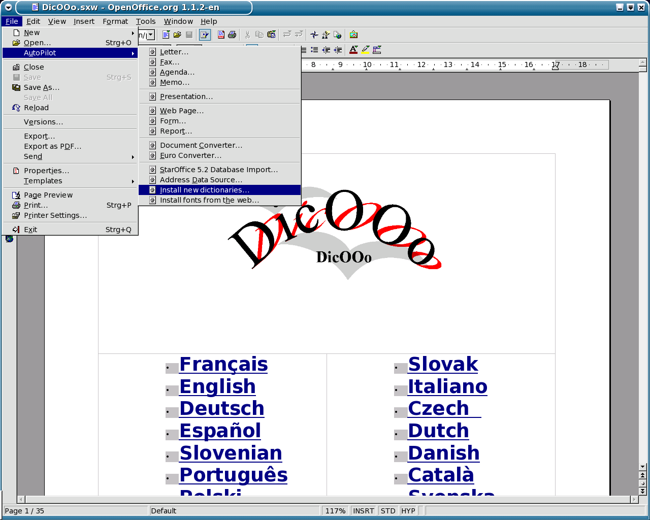 OpenOffice.org 1.1 New Features. Taken on Windows XP and Linux.